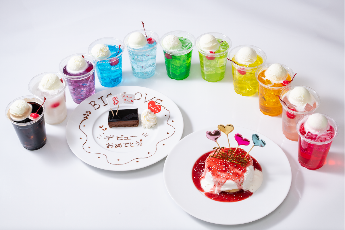 今回は、皆さんの推し活を応援するカラフルなメニュー&自分だけのデコレーションが楽しめるカフェを期間限定でオープンします。いまや推し活にはかかせない推しカラー。あなたの推しカラーが見つかる、11種のカラーフロートや、カラフルなソースが選べるパンケーキをご用意しました。また、様々な推しの誕生日やデビュー、活躍を祝いたい!という方のために、自分でデコレーションをしたり、推しへのメッセージが描けるケーキプレートも登場。