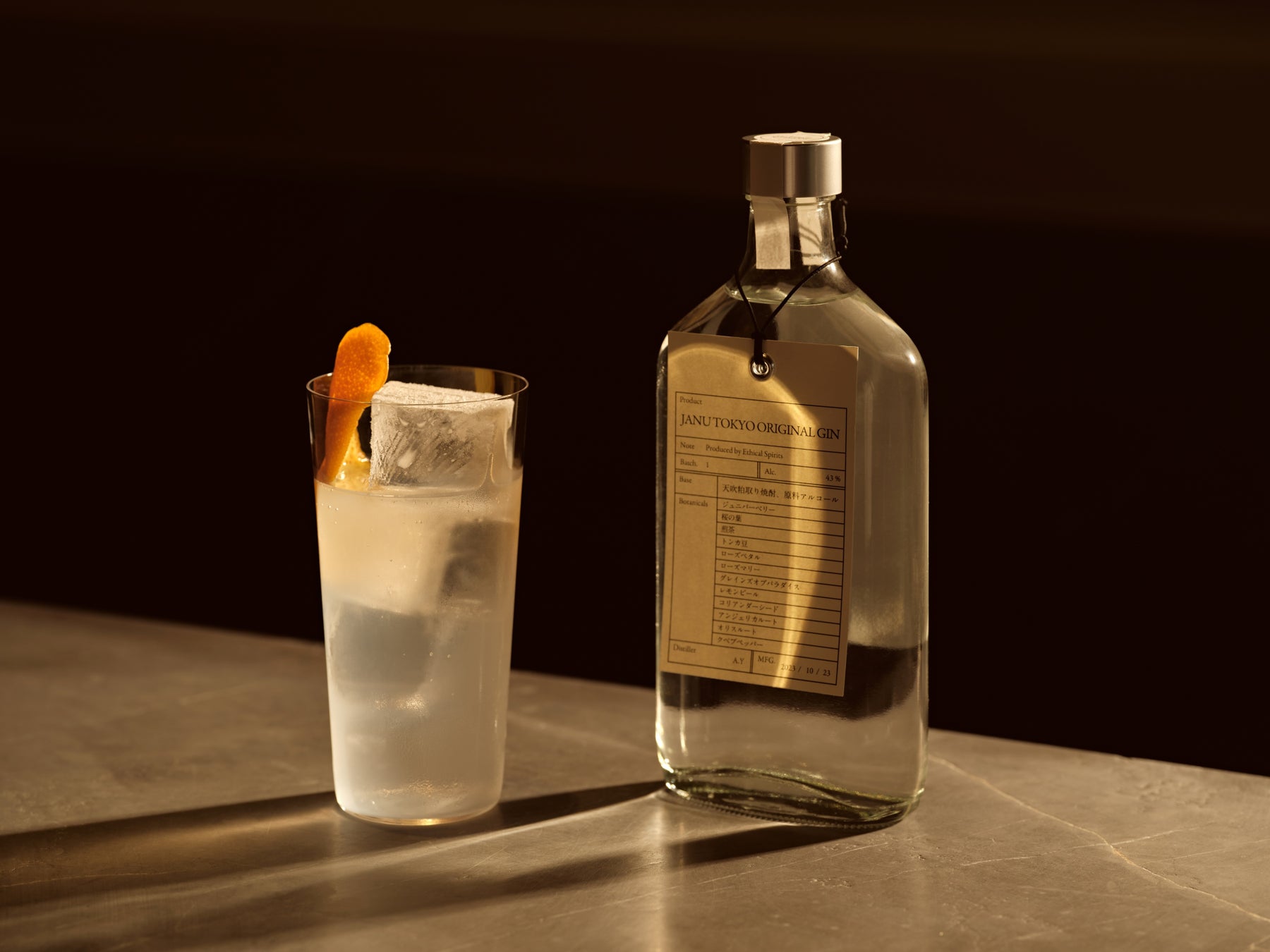 エシカル・スピリッツ(東京・台東区)が、ジャヌ東京のために製作した、「ジャヌ東京オリジナルクラフトジン」。日本酒造りの過程で廃棄される酒粕をリユースし、桜の葉や薔薇の花弁、トンカ豆、煎茶、レモンピールなど10種類以上のボタニカル素材を使用した華々しさあふれるジンは、ぜひジントニックでどうぞ。