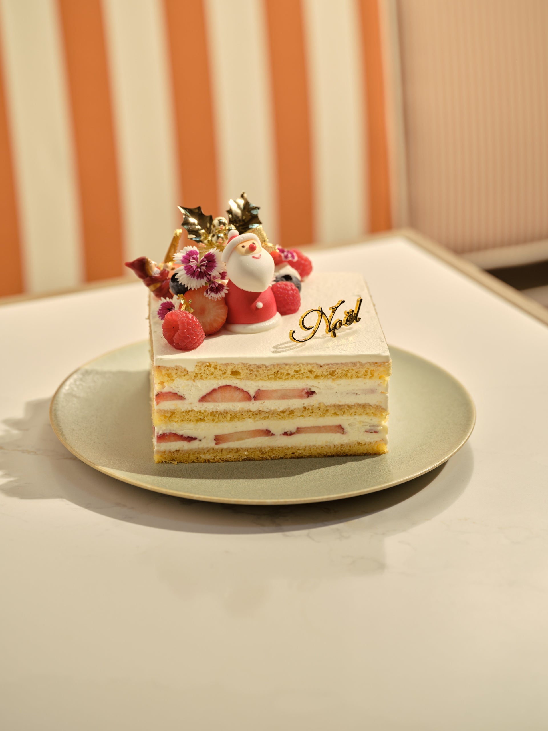 「お子さまの笑顔を思い浮かべながら、心を込めて作りました」、と話す野口の『クリスマス ショートケーキ』には、サンタの助手エルフ(小人)も顔をのぞかせ、エディブルフラワーと金箔がクリスマスムードをより一層盛り上げます。「ご家族や大切な方々と、笑顔いっぱいのクリスマスをお過ごしいただけることを願っています」。