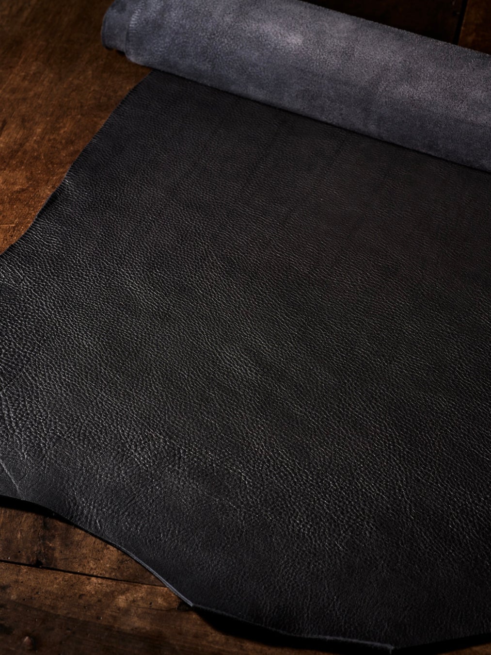 イギリスの高級革靴ブランドで特別な顧客からオーダーを受けるビスポークシューズで使用されるレザーを作り続けてきたタンナーが生み出した“英国純正”のオイルレザーです。靴と比べ、質感としなやかさに拘り、鞄や財布小物用の革素材を生み出しました。高級革靴として磨かれた艶出し技術により、渋く美しい艶感を醸し出すのが大きな魅力です。