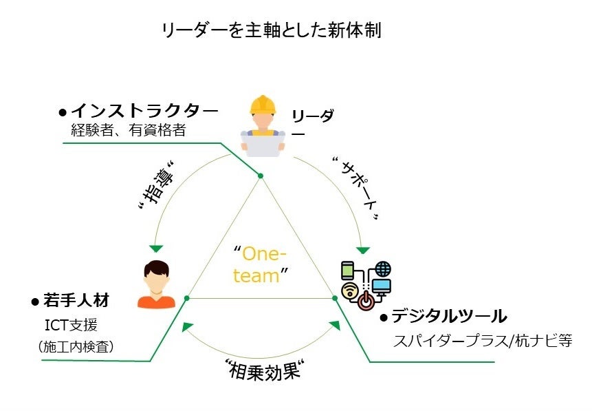 現場経験があり、且つデジタルツールの活用推進・支援を行ってきた人材を主軸とし、「基礎工事」、「躯体工事」、「仕上げ工事」に配置する人材を分類し、それぞれの重要な業務に専念することで、検査業務に特化し早期に業務を覚えることができたのと同時に、現場の生産性向上にもつながりました。