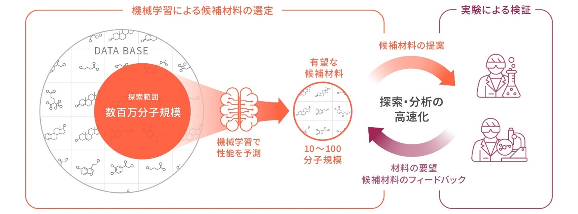 *1 「マテリアルズインフォマティクス(MI)」…機械学習などの情報科学(インフォマティクス)を用いて、有機材料、無機材料、金属材料など様々な材料開発の効率を高める取り組み。材料の膨大なデータを機械学習で解析することで材料設計や新材料探索の期間を短縮できることなどが期待されている。