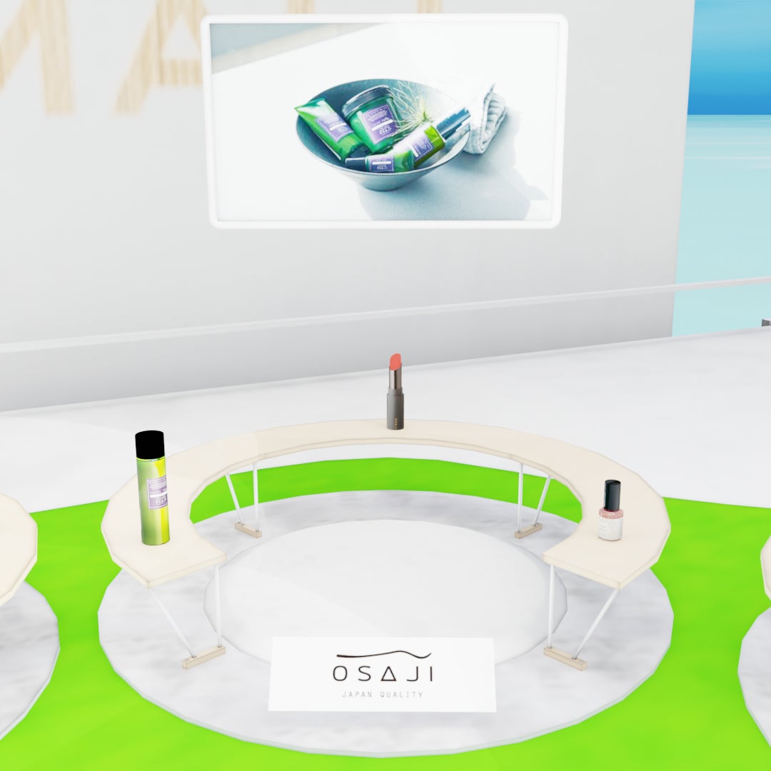 三越伊勢丹が運営するスマートフォン向けメタバースアプリ「REV WORLDS」内でイオンモールが展開する「バーチャルストア」にOSAJI(オサジ)がオープン。