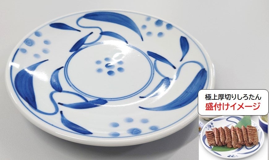 店舗でメインのお肉料理を盛り付けている戸部古染の焼き皿です。