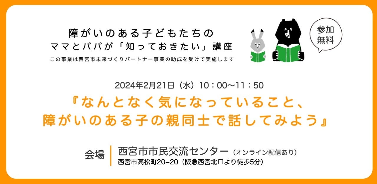 『なんとなく気になっていること、障がいのある子をもつ親同士で話してみよう』開催(無料)