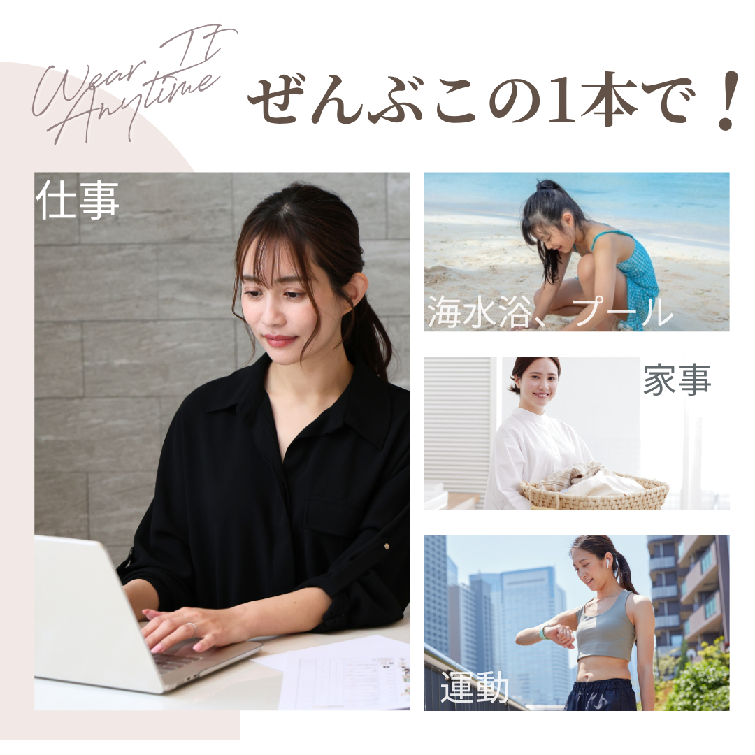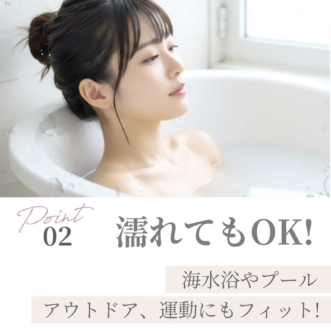 ・水濡れOK:濡れ髪でも伸びにくく、海・プール・お風呂上がり・汗にも対応
