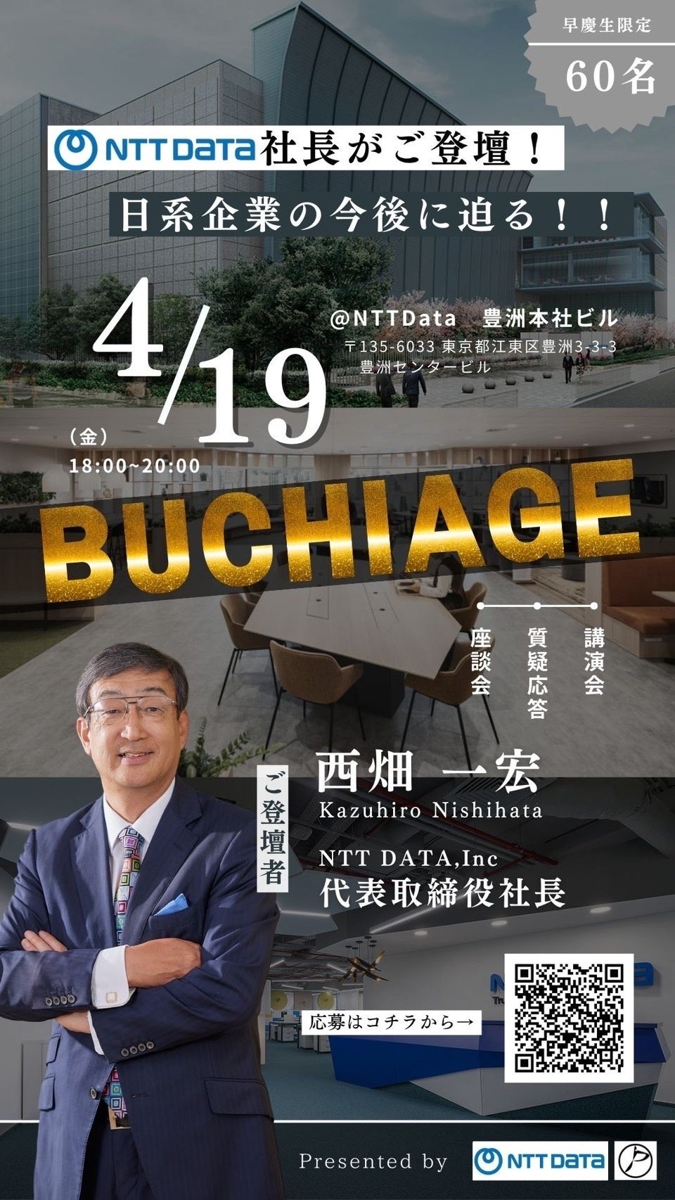 早慶東大生限定の無料キャリアイベントにNTT DATA,Incの代表取締役社長がご登壇。