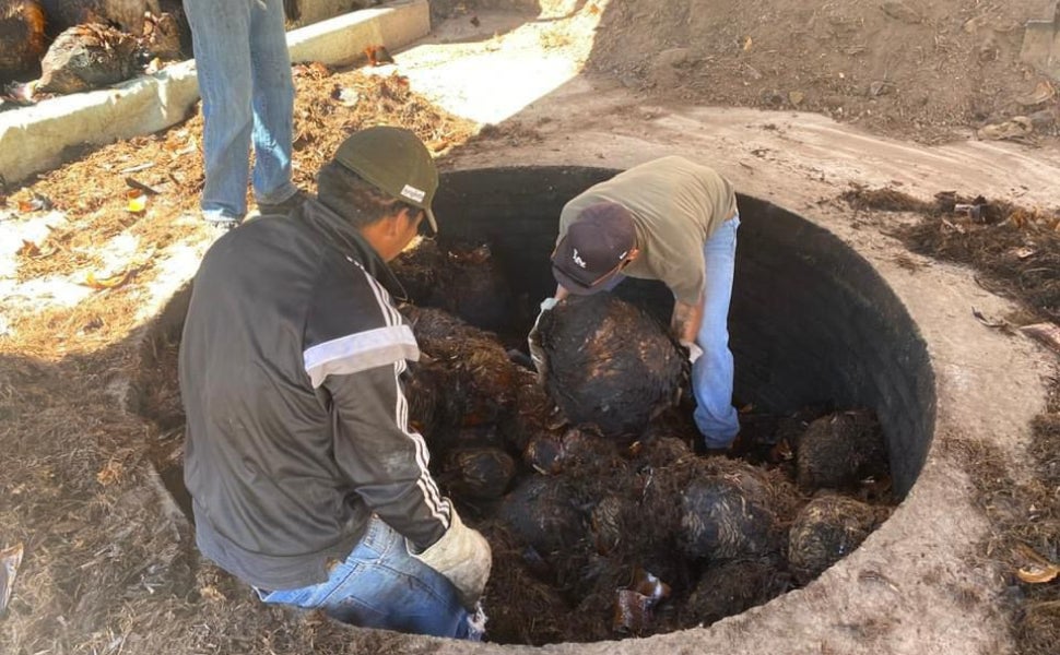 収穫したダシリリオンは地面に穴を掘って作られた石造りのオーブンに薪と一緒に人の手で1つずつ投入し、蒸し焼きにします。