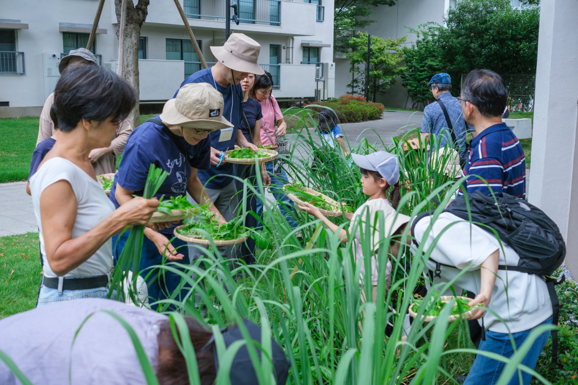 「農」を通じて人のつながりを街に広げる試み。年間を通じて、ワークショップひろばでの「緑のカーテン」の育成や、種まきから収穫までの流れを体験できる野菜栽培ワークショップの開催を通じて、ゆるやかなつながりが生まれています。収穫祭では、野菜の収穫体験やプロジェクトの成果展示を予定しています。