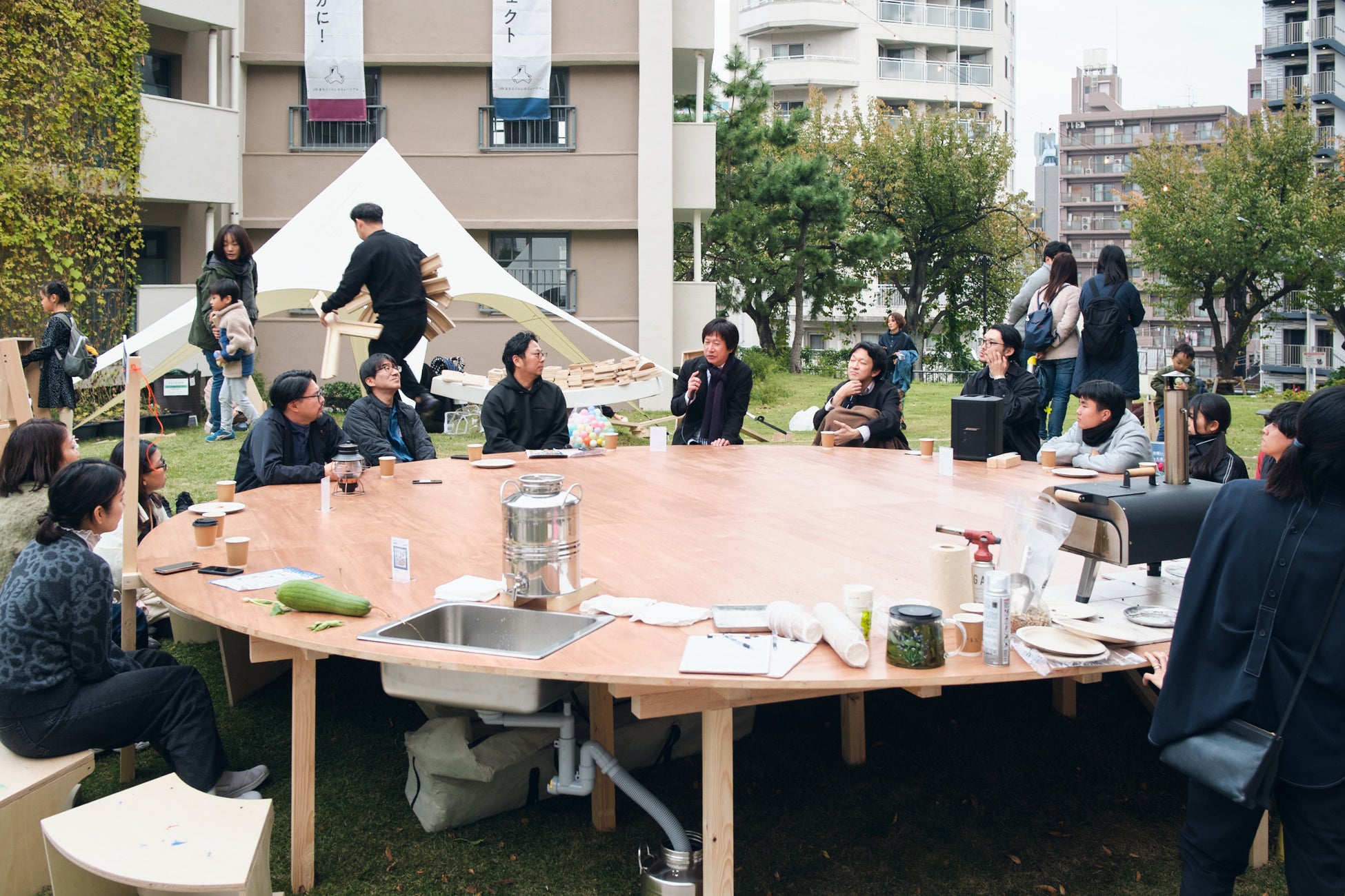 「広場を楽しむポータブルキッチンをつくるワークショップ」を企画づくり/デザイン/組み立てまで、3回連続で開催。収穫祭当日は、やってみたい企画をもとに構想したポータブルキッチンの部材を切り出し、組み立てを行います。広場を楽しみ尽くすための「企画」と「仲間」を同時につくります。