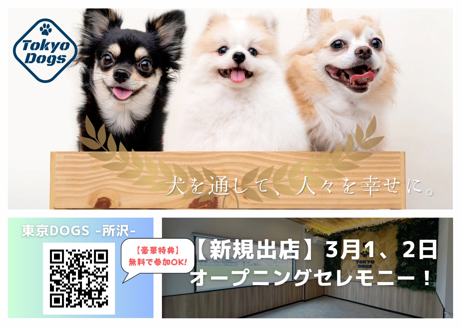 株式会社東京DOGS(本社:埼玉県越谷市川柳町1丁目298、代表取締役:松尾 邑仁)は、2025年3月1日に埼玉県所沢市に犬のしつけ専門店「東京DOGS-所沢-」を新規オープンすることを決定しました。