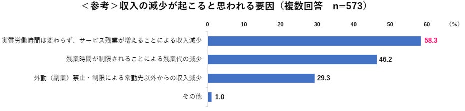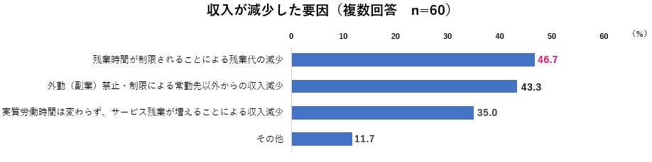 収入が減少した要因は「残業時間が制限されることによる残業代の減少(46.7%)」