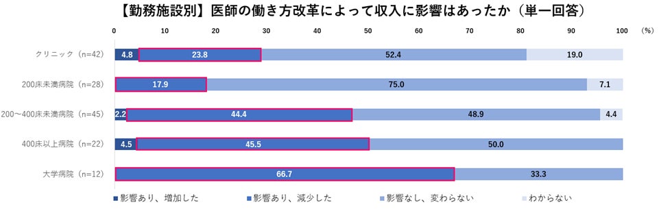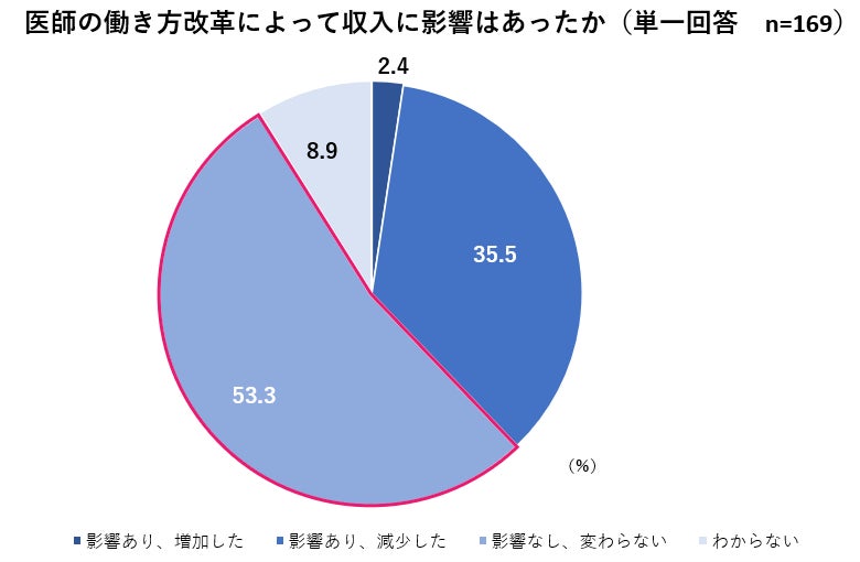 医師の働き方改革後も53.3%の医師が収入に「影響なし、変わらない」