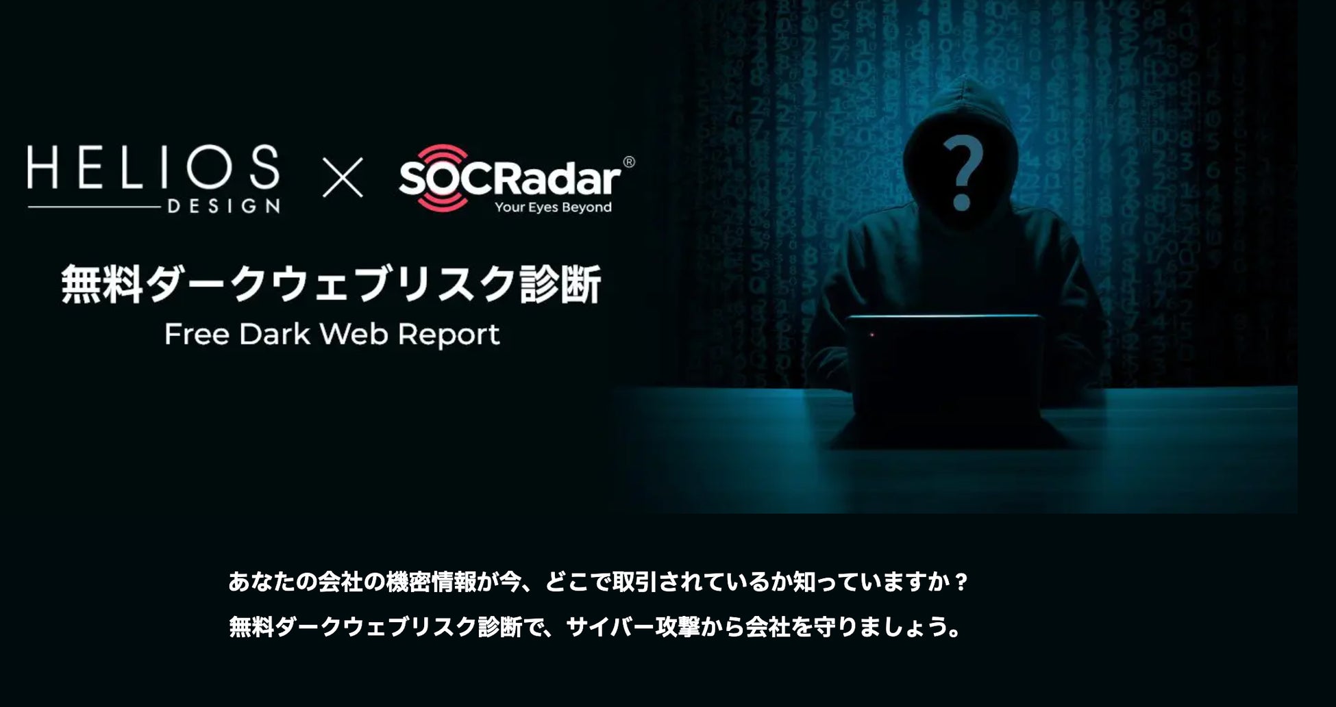 SOCRadar Cyber Intelligence, IncとHelios Design合同会社は、共同で開発した新しいサービス「無料ダークウェブリスク診断 - Free Dark Web Report」の提供を開始します。