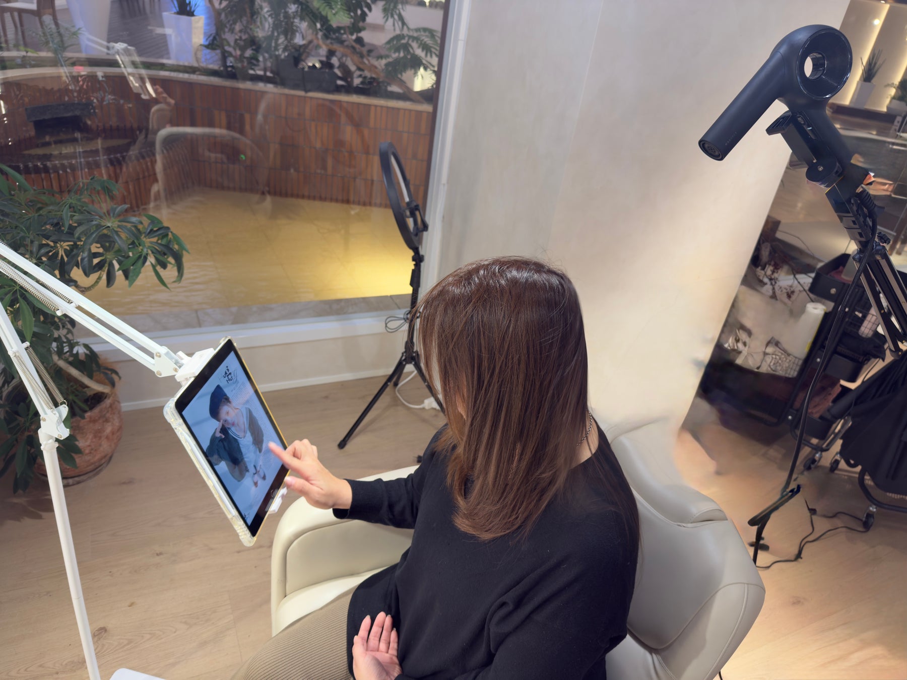 ■複数種類のドライヤーに固定スタンドを備え、両手を使ったスタイリングや美容商品体験が可能に