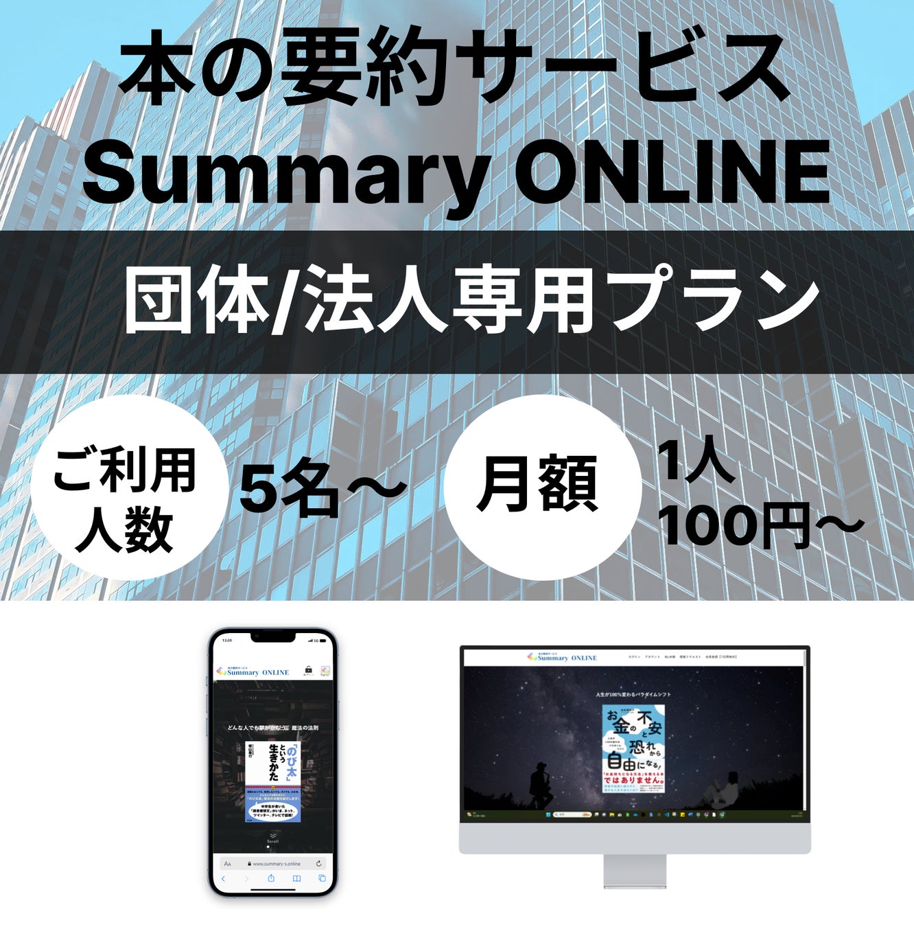 団体/法人向けの新プランが、本の要約サービス「サマリーオンライン」から登場!販売パートナーも募集!