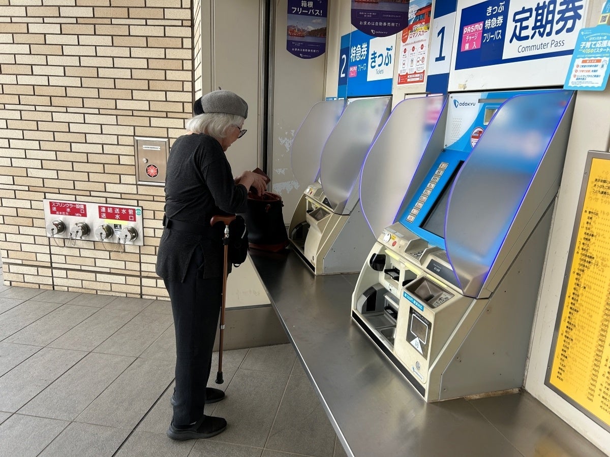 白杖が落ちないよう気をつけながら、指先で物の形を確かめ、耳で周囲の状況を察知しなければならず、大変な苦労を強いられています。壁や床に白杖を置いて手を使うこともありますが、目の代わりとなる白杖を体から離すのはとても不安なことであり、置き場所を探すことも大変です。