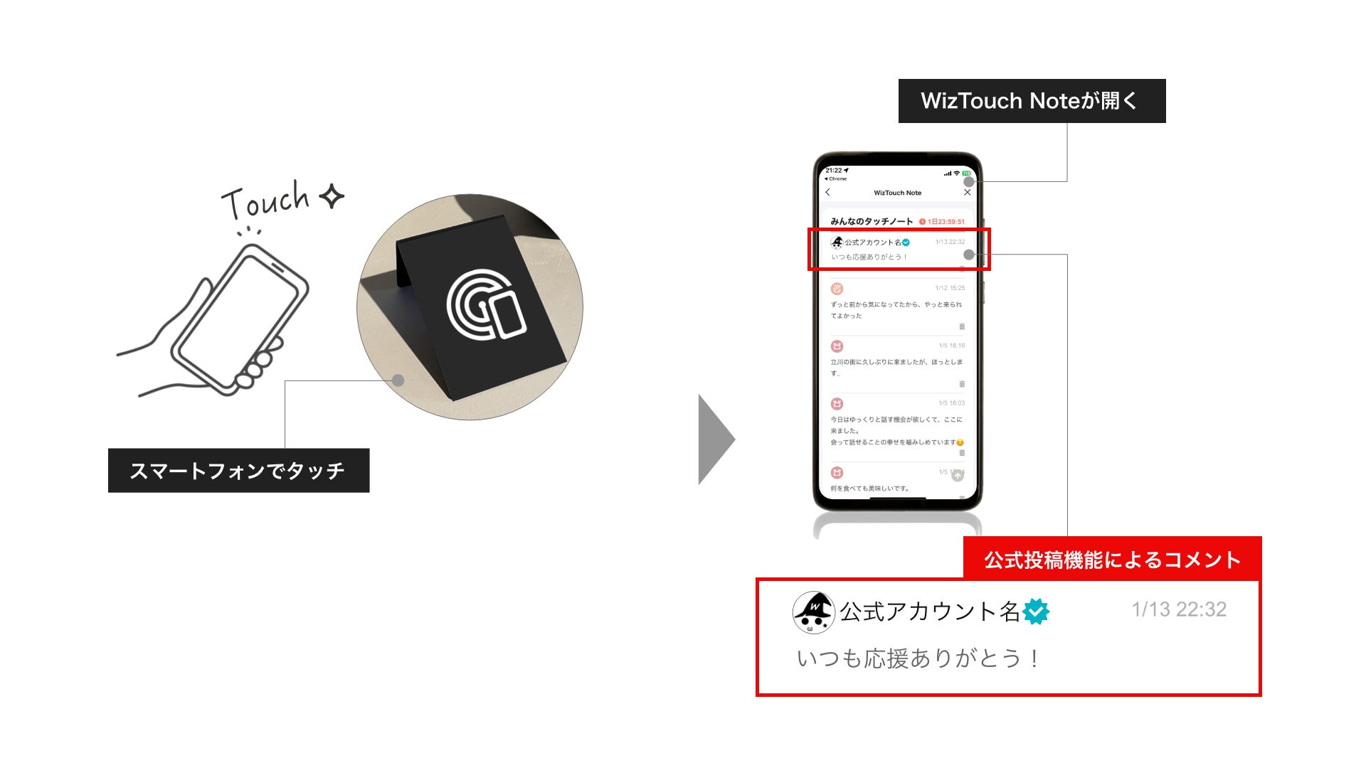 これまでのSNSにはない、ロケーションに特化したファンコミュニティーの形成を実現する「WizTouch Note」。ぜひ、この新しい交流の形をご体験ください。
