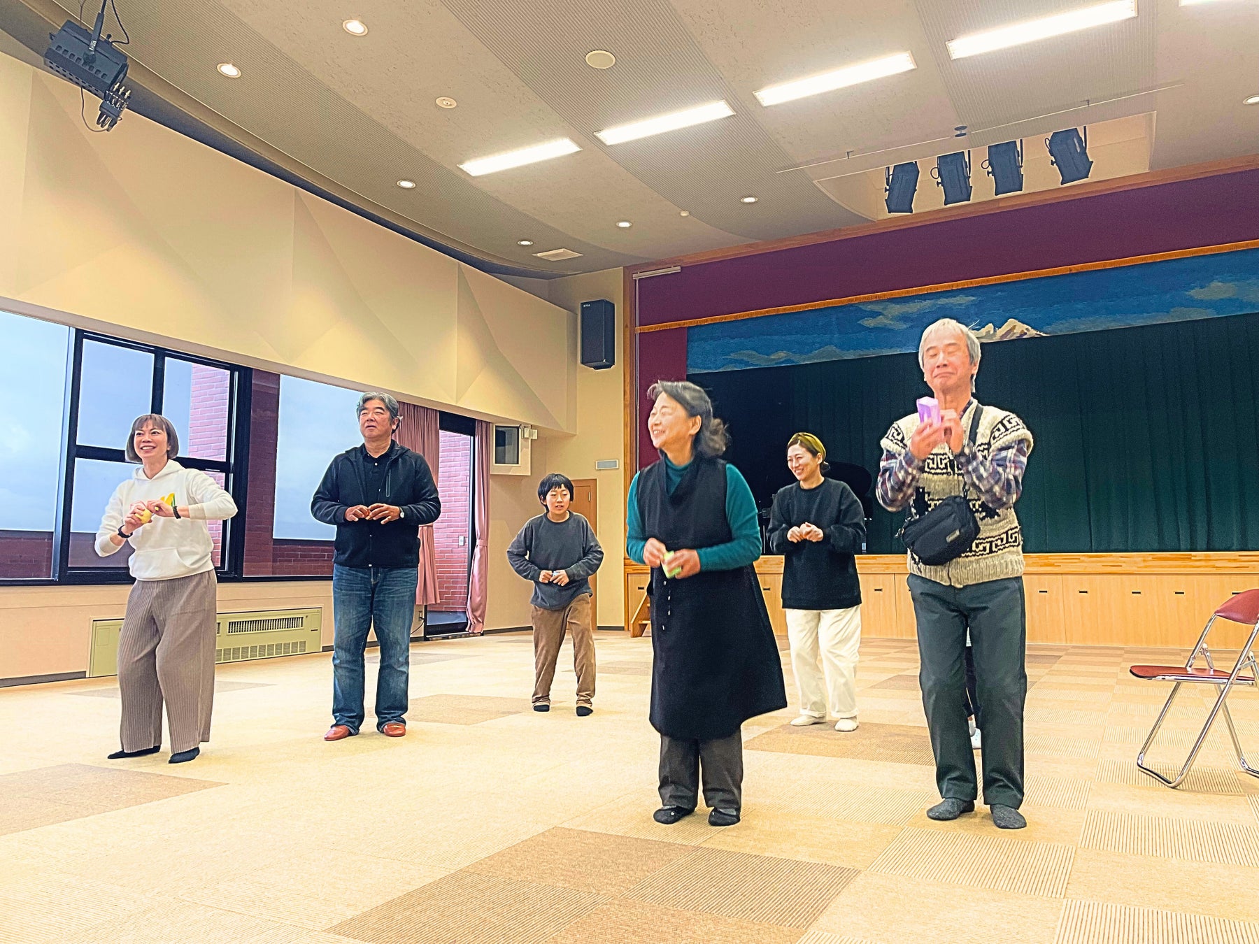 3歳から80代までの幅広い世代が参加するワークショップを実施。楽器制作や身体表現、即興的な音楽体験を通じて、世代を超えたコミュニケーションを育みました。音を出す・出さない、待つ、感じるといったプロセスを共有することで、言語や年齢に依存しない新たな関係性の構築を促進しました。