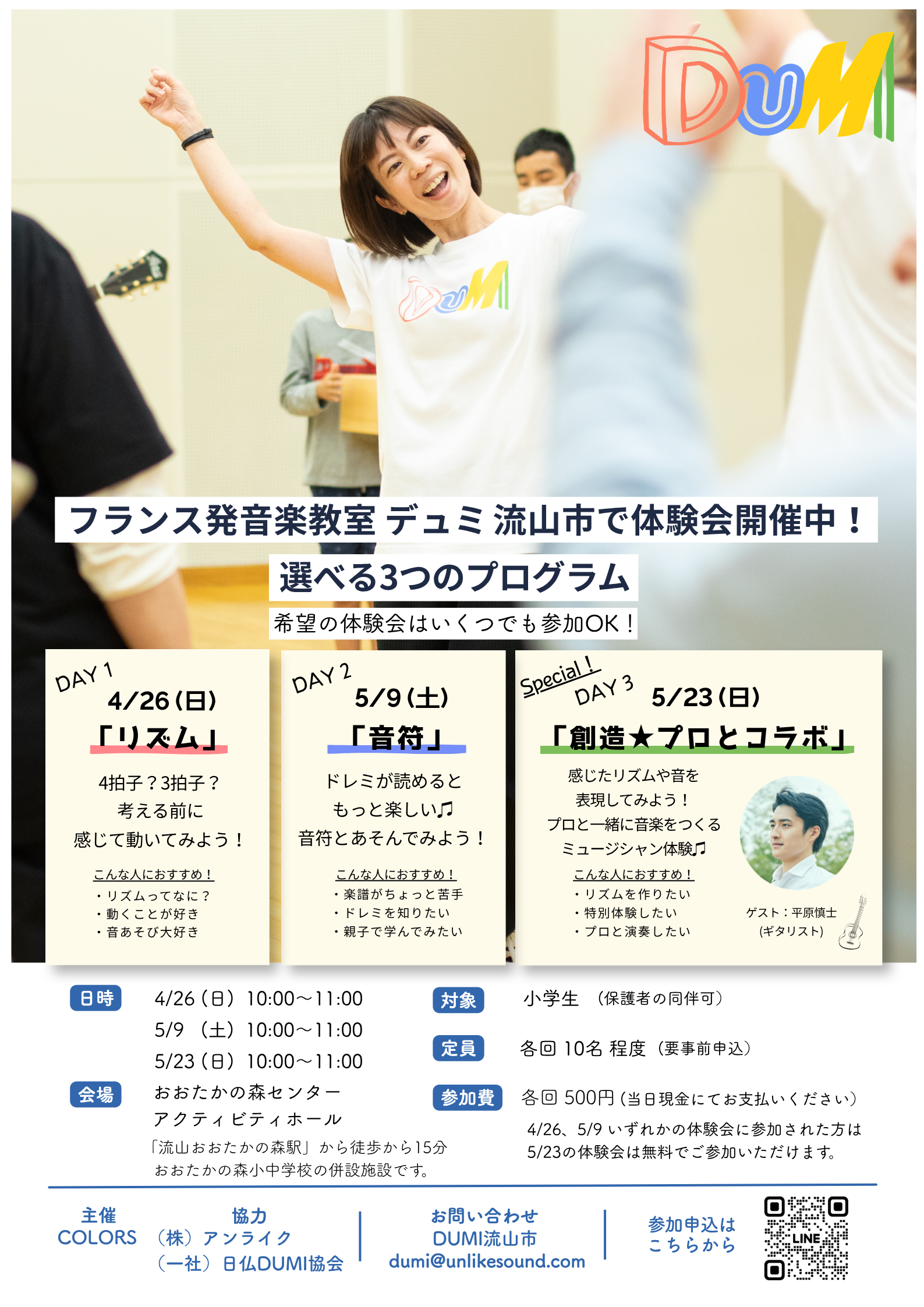 2026年4月から5月にかけては千葉県流山市にて定期開催に向けた体験会を実施し、6月には山梨県にて体験会および座談会の開催を予定しています。地域ごとの特性を活かしながら、世代や背景の異なる人々が関わり合う音楽体験を設計し、DUMIの実践を各地へと展開してまいります。