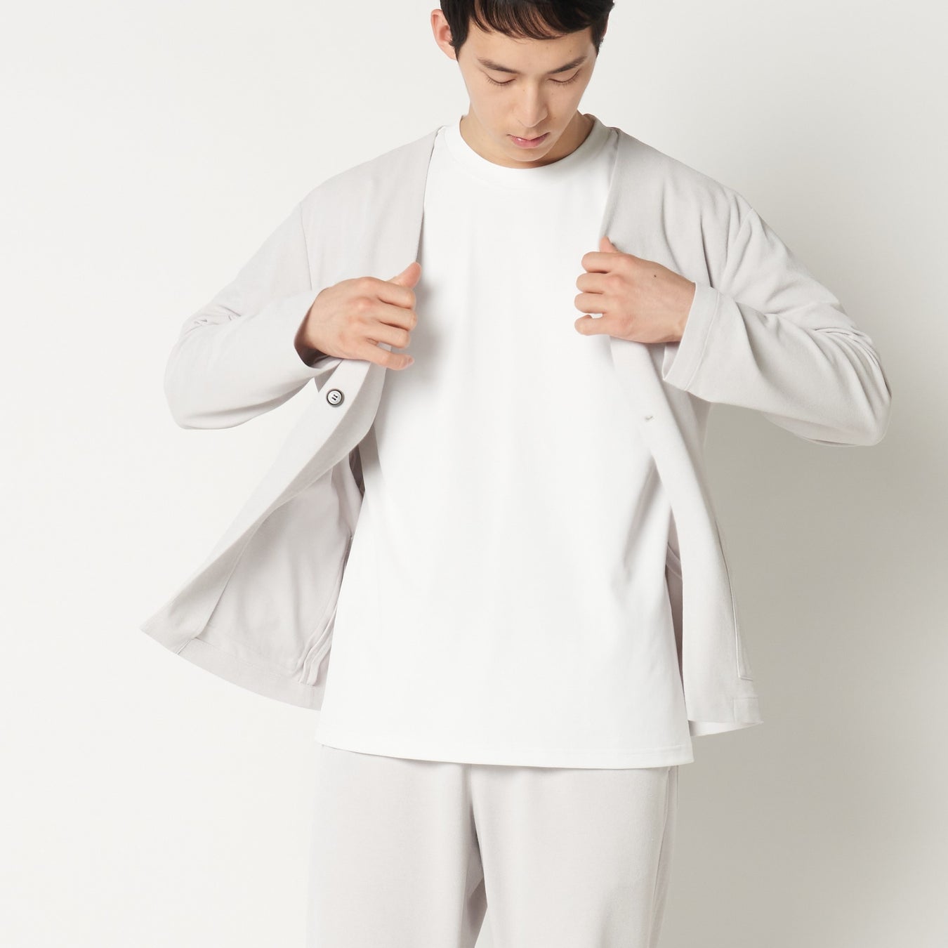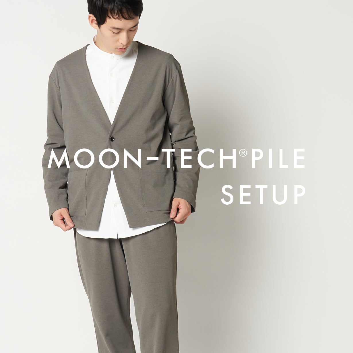 先端素材による圧倒的な機能性で快適で便利な生活を実現。どんなシーンにも馴染むシンプルでベーシックで飽きのこないデザイン。「未来の優れた普通|ムーンテック®パイル セットアップ」