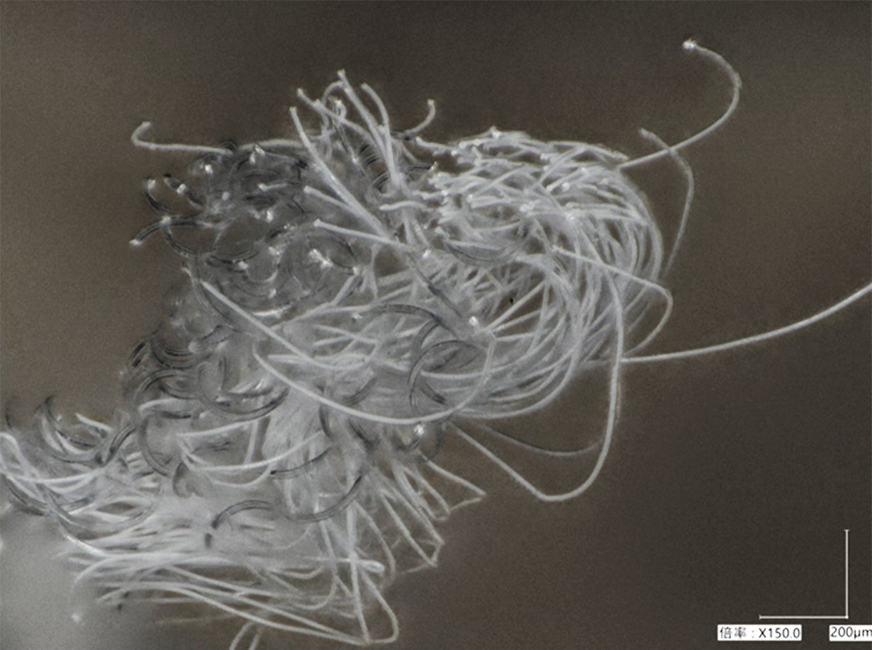生まれたのはふわふわの綿のようにも見えるランダムでナチュラルで膨らみのある美しい「糸」。