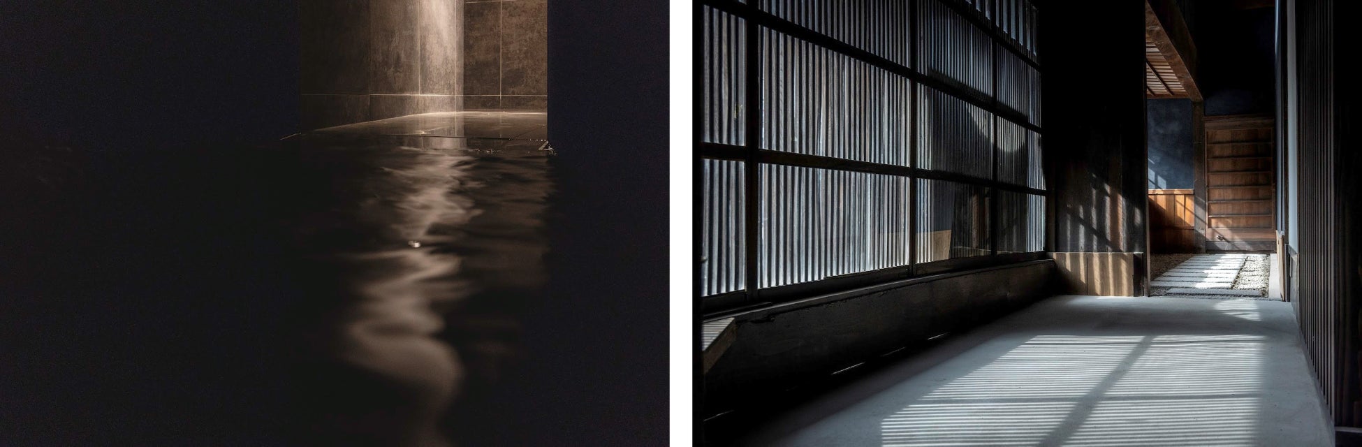 専有庭や、建物内にプライベートサウナを有する第二の部屋。石州瓦を研ぎこんだ人造大理石や石州和紙を空間に施し、柔らかい空間体験を提供