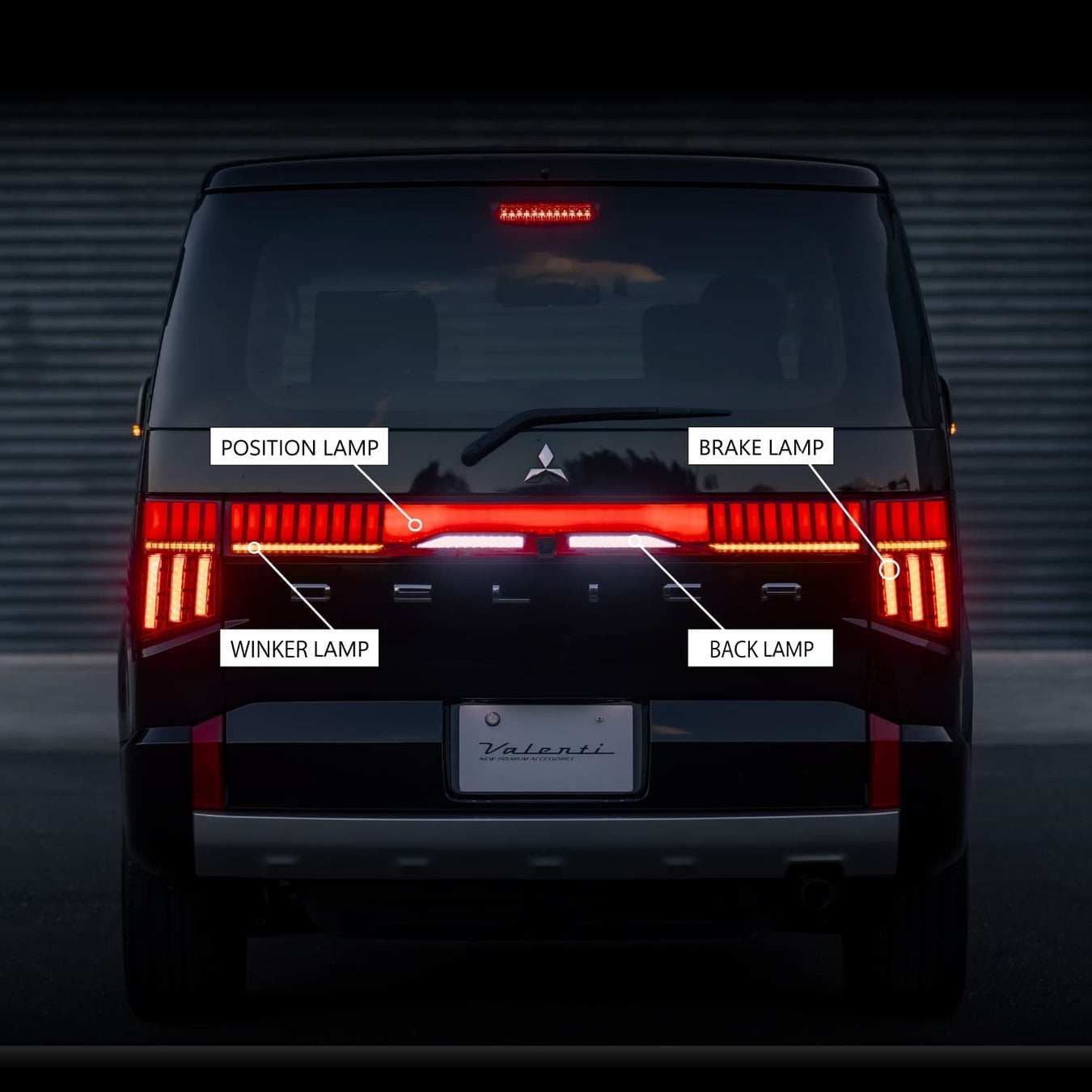 適合車種は三菱デリカD:5後期型で、光り方、流れ方、そして全体の造形まで、ディテールの細部にまでこだわりを詰め込み、更にヴァレンティ独自のオープニング&エンディングアクションを搭載しました。