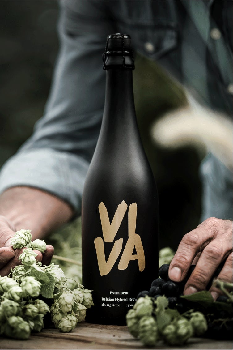 シャルドネ、麦芽、ホップによる新世代のお酒「ビバ」。シャルドネはシャンパーニュ協会酵母と野生酵母で発酵。麦芽とホップはシャンパーニュ酵母で発酵。最高のタイミングで2つが混ざり合い、3度の発酵を経て「ビバ」は生み出されます。