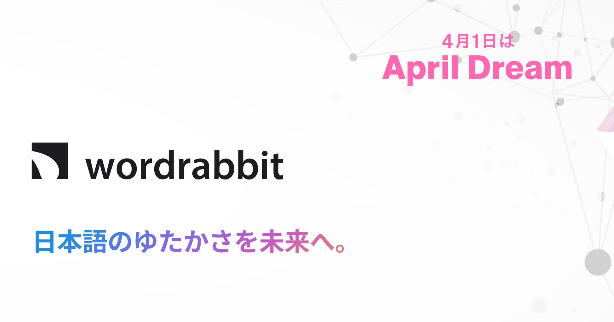 当社は、4月1日を夢を発信する日にしようとするApril Dreamに賛同しています。このプレスリリースは「wordrabbit」の夢です。