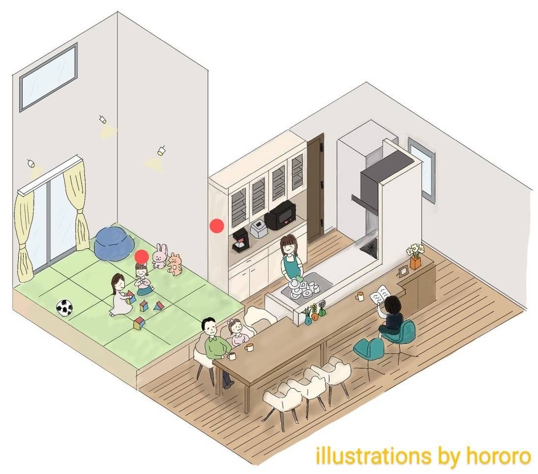 そして、私は小さな頃からイラストを描くことが得意だったこともあり、注文建築の内装やお客様がこだわりを持っている部分をイラストでパースにすることにしました。
