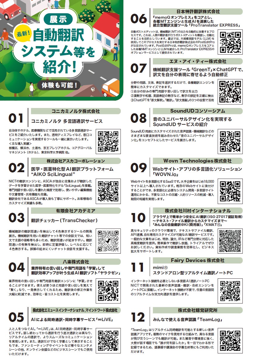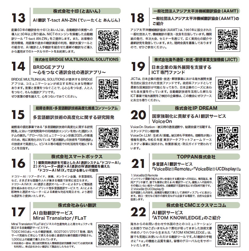 当日は同会場にて、翻訳事業に携わる国内企業・団体(22者)によって、最先端の同時通訳技術の研究開発や最新の製品・サービス等が紹介されました。