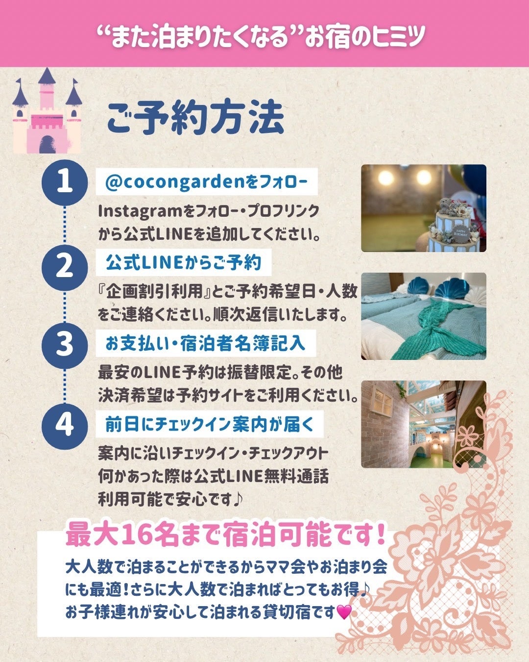 予約方法:公式LINEまたはメール(cocongarden5@gmail.com)にて予約受付