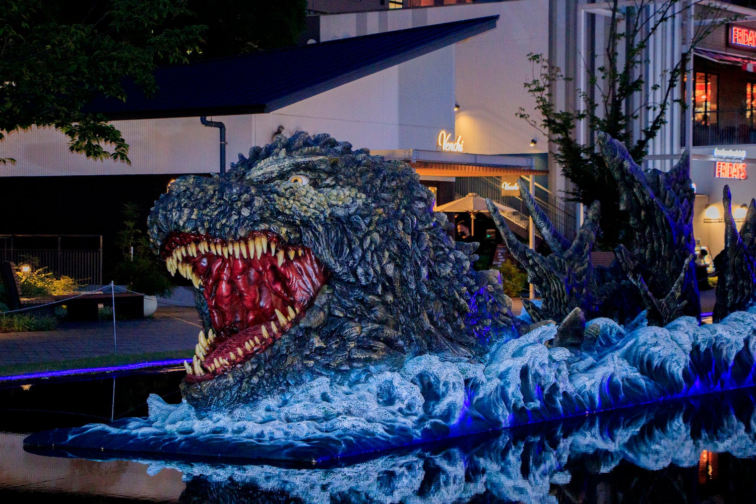 ☆NEW☆ミズベヒロバのゴジラが上陸!ミライタワーの真下に出現