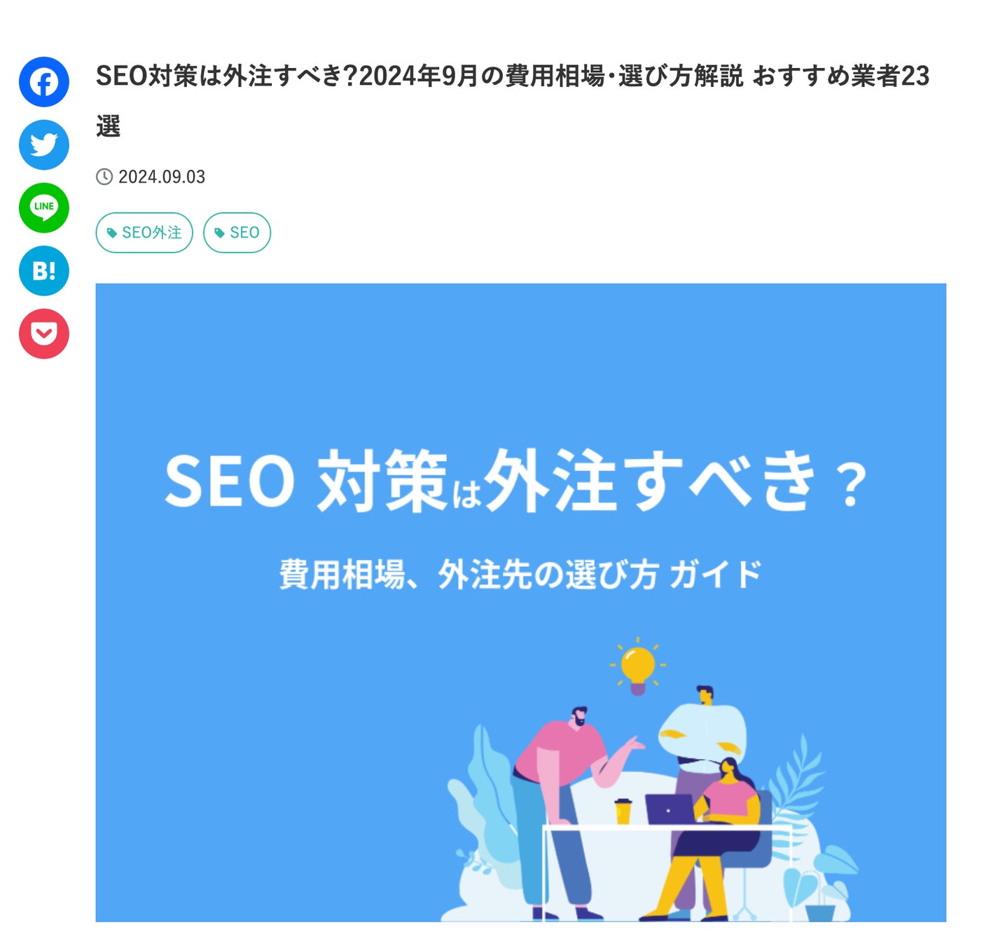 「SEO対策は外注すべき?費用相場・選び方解説 おすすめ業者20選 2024年9月最新版」記事はこちらからご覧いただけます
