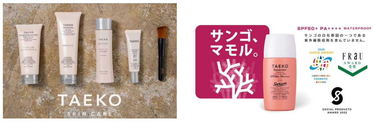 フラッグシップともいえる「TAEKOサンスクリーン」は、近年環境問題の中でも注目を浴びる「サンゴの白化」の原因にもなっている紫外線吸収剤不使用の日焼け止めです。さらに、揮発性油剤やシリコーン油、界面活性剤も不使用でありながらSPF50+ PA++++ ウォータープルーフ仕様。