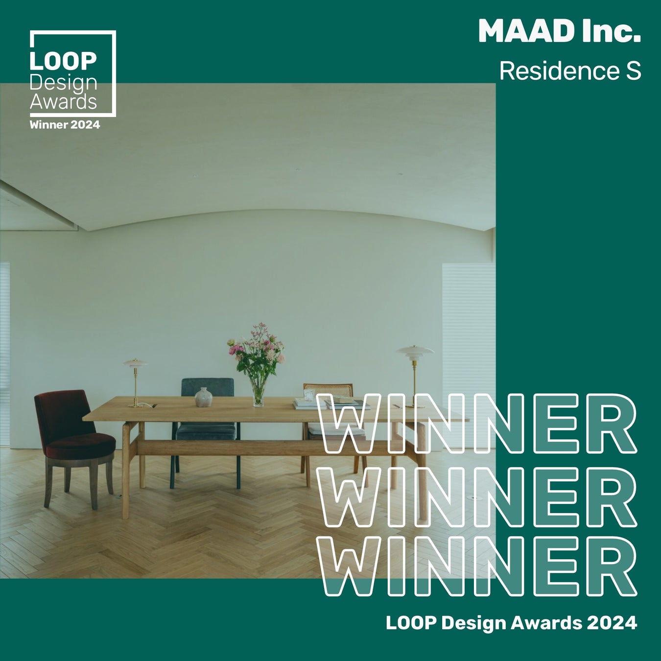 「外の世界や環境とのリズム 流れる空気や光 空間で得られる体験」を提案するMAAD株式会社(本社:東京都豊島区 代表取締役 村木 計)設計デザインの「Residence S」が、2024年「LOOPデザインアワード インテリア部門」にて受賞しました。