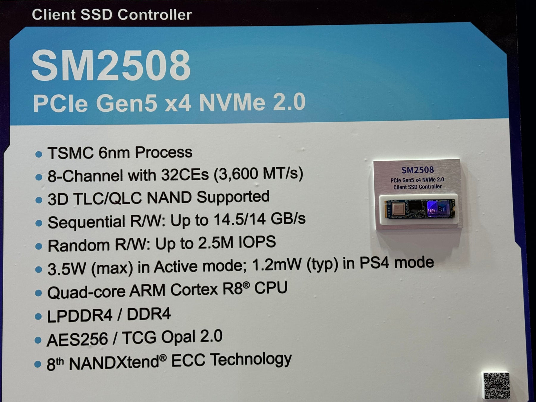 SM2508は、主要NANDベンダーを含むSSDベンダーのSSDに搭載予定で、量産をQ4'24~Q1'25に予定しています。
