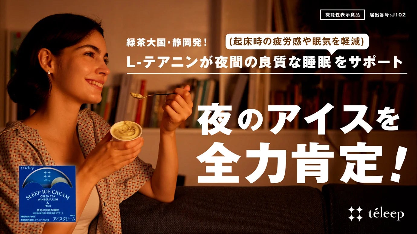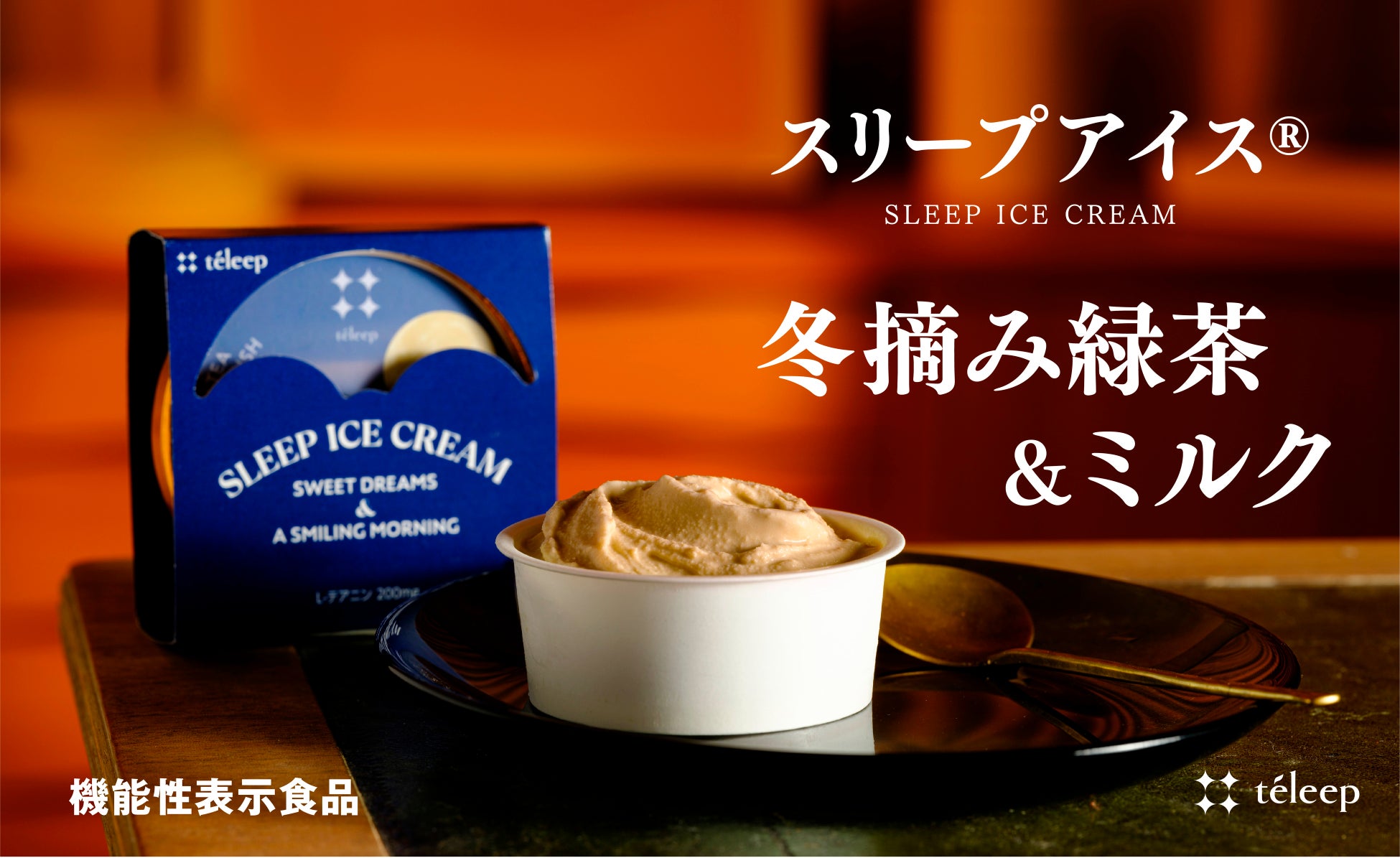 県島田市、代表:矢田裕香)は、おやすみ前に食べる新習慣「スリープアイス®」を開発し、2024年6月30日10:00から、クラウドファンディングサイトMakuakeにて応援購入募集を開始いたします。今回のメイン商品である「スリープアイス®冬摘み緑茶(寒茶)&ミルク」は、緑茶のうま味成分「テアニン」により、夜間の良質な睡眠(起床時の疲労感や眠気を軽減)をサポートする機能性表示食品です。