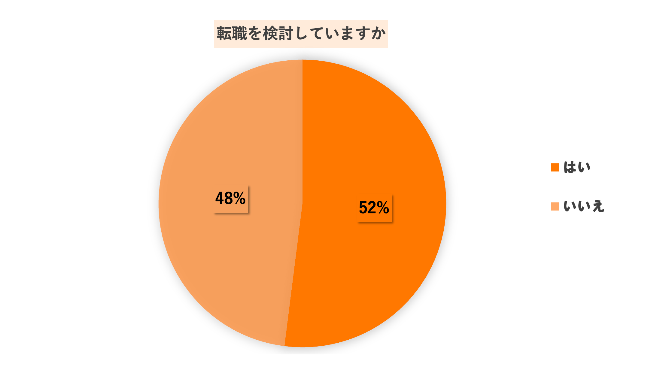 「はい」が52%、「いいえ」が48%となり、半数以上が転職を検討している結果となった。