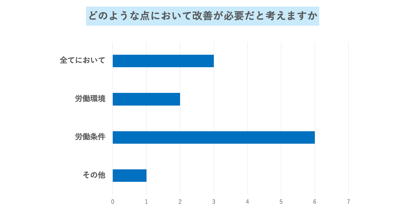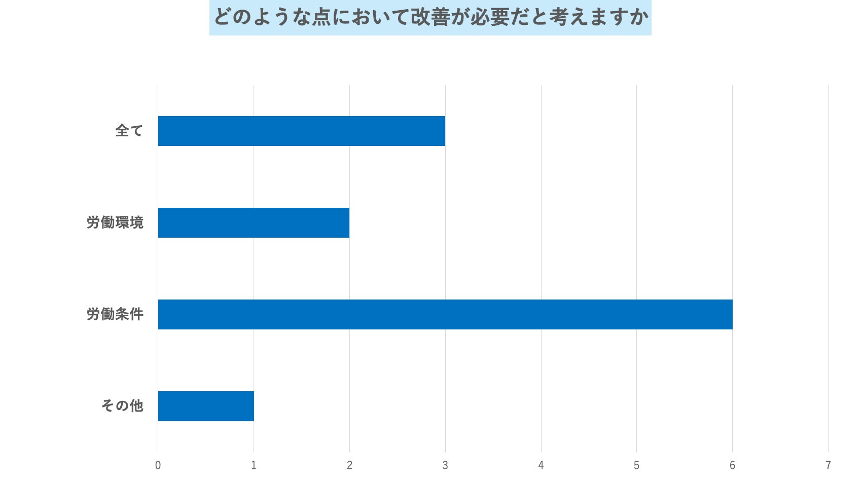 「労働条件」が最も多く、次いで「全て」「労働環境」との結果となった。
