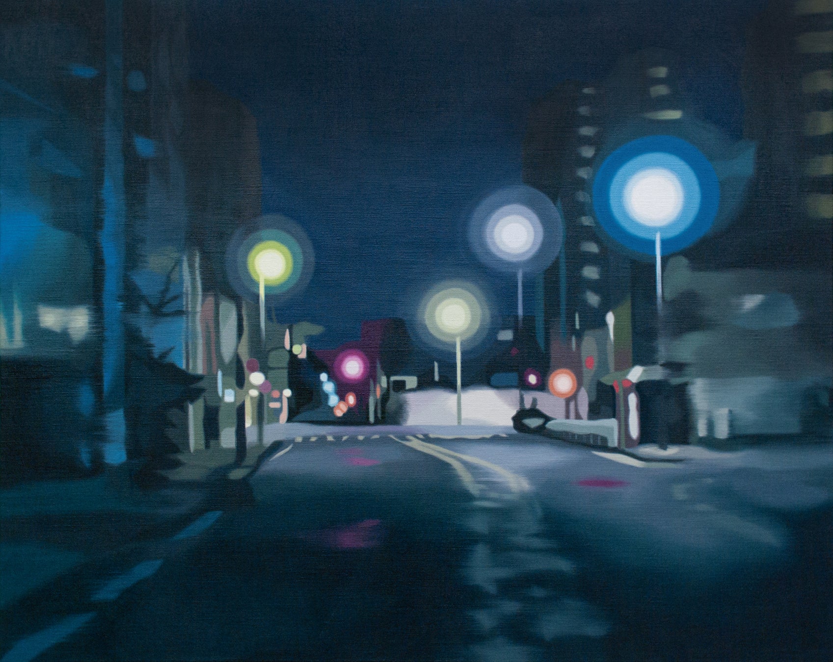 TEZUKAYAMA GALLERYではおよそ18年ぶりとなる鈴木雅明の個展を開催します。鈴木が描くのは、夜の住宅街に人工の光が差す風景。それは誰もが通ったことのあるような既視感と共に、その夜の闇の中に入り込んでいくような感覚を鑑賞者に与えます。