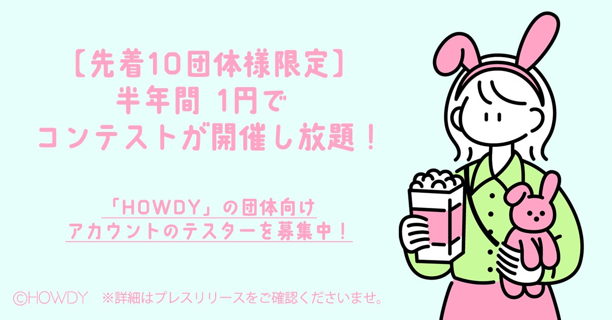 【先着10社限定】企業・団体募集中!半年間1円でコンテストが開催し放題!「HOWDY」の団体向けアカウントのテスターを募集中!