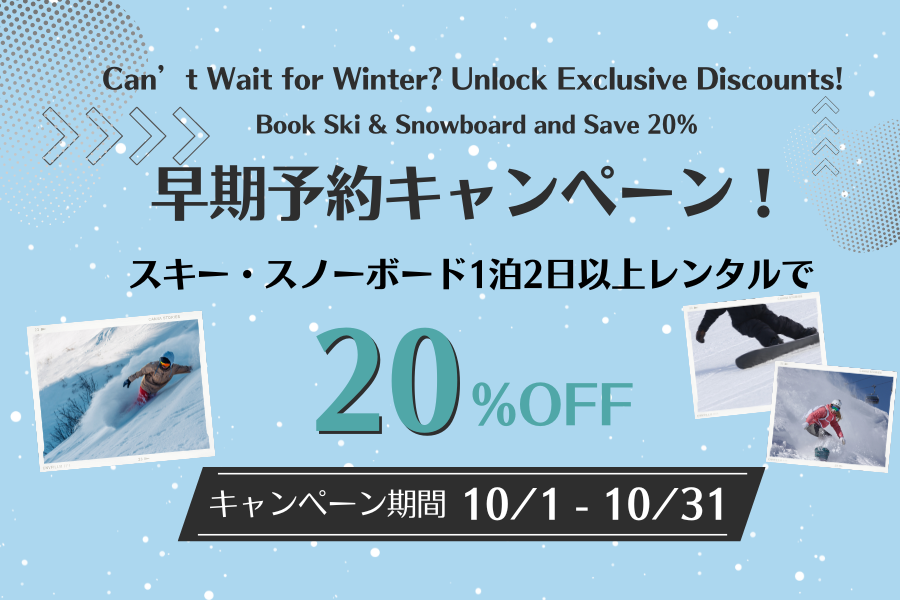 冬の準備は早めがお得!早期レンタルでウィンターシーズンを迎えよう - スキー・スノーボードギアが20%オフ!