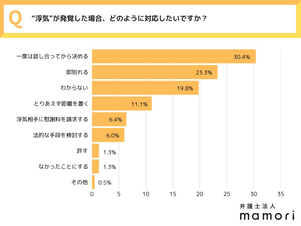 浮気発覚時の対応の最多は「一度は話し合ってから決める」30.4%