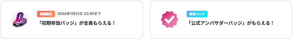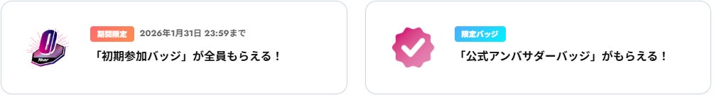 登録者全員に、プロフィールで使用できる初期ユーザーの証である限定バッジを付与。