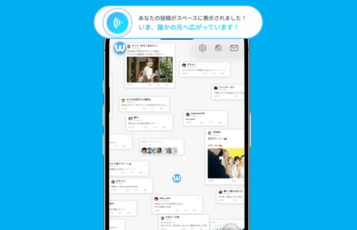 フォロワーに関係なく、あなたの投稿が毎日誰かに届けられる。反応が良いほど多く広がる設計になっております。