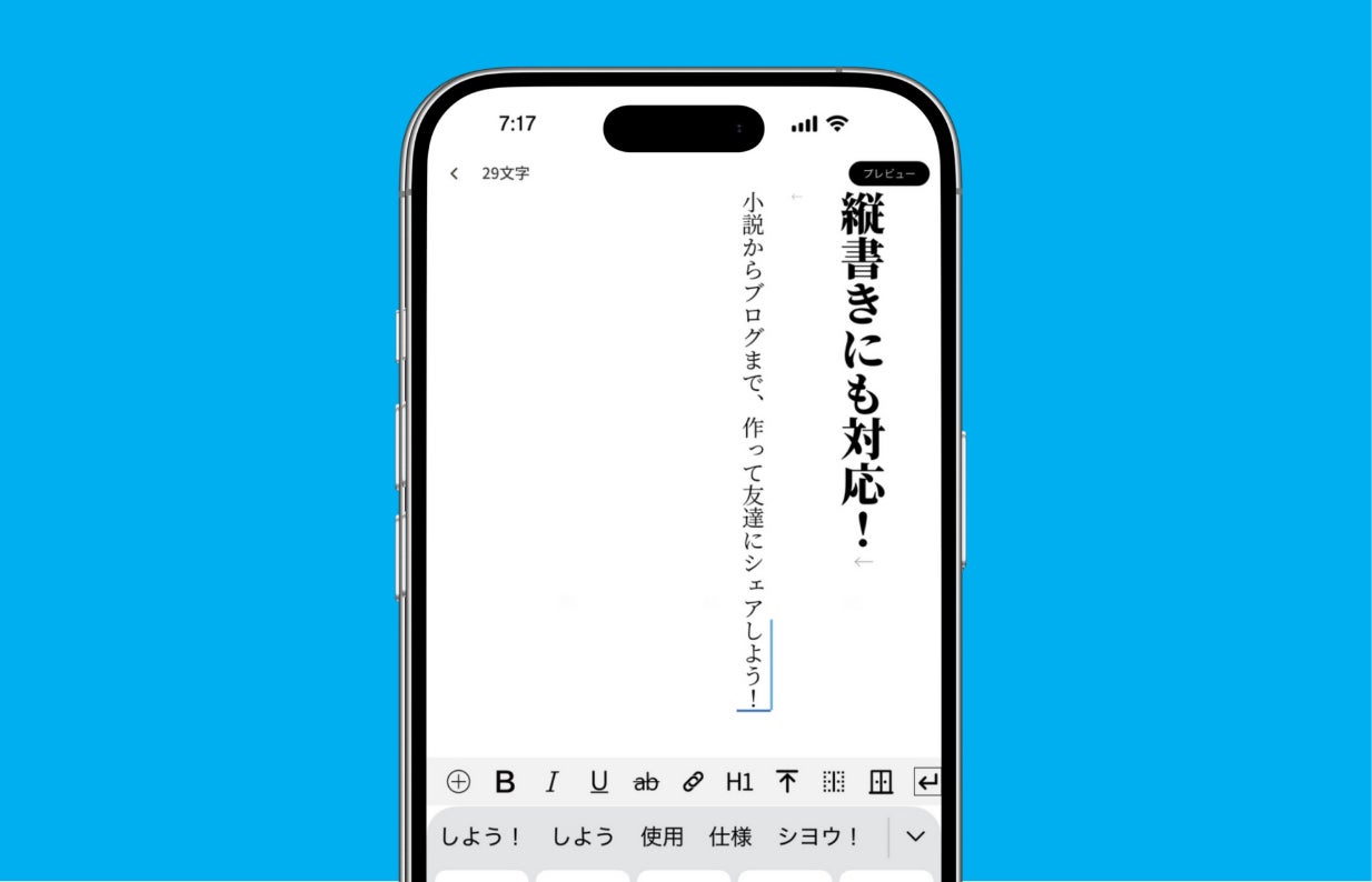 Writter(ライター)は、世界初※の「縦書き対応・電子書籍」を投稿できるSNSアプリです。電子書籍(ブック)を一つの表現手段として捉え、短文のポストから本格的な執筆まで、あらゆる「書くこと」に特化しています。