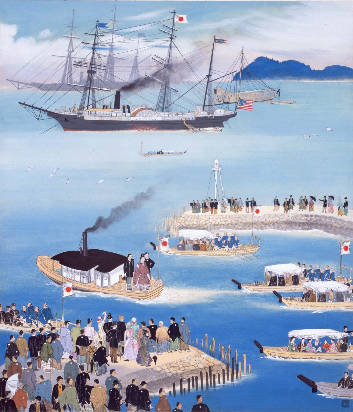 明治神宮外苑の中心施設である聖徳記念絵画館。そこに掲揚される明治天皇・昭憲皇太后の御事績を描いた八十点の巨大壁画は、長い時を経てもなお鮮やかに、近代国家の礎を築いた明治という激動の時代を雄弁に物語っています。