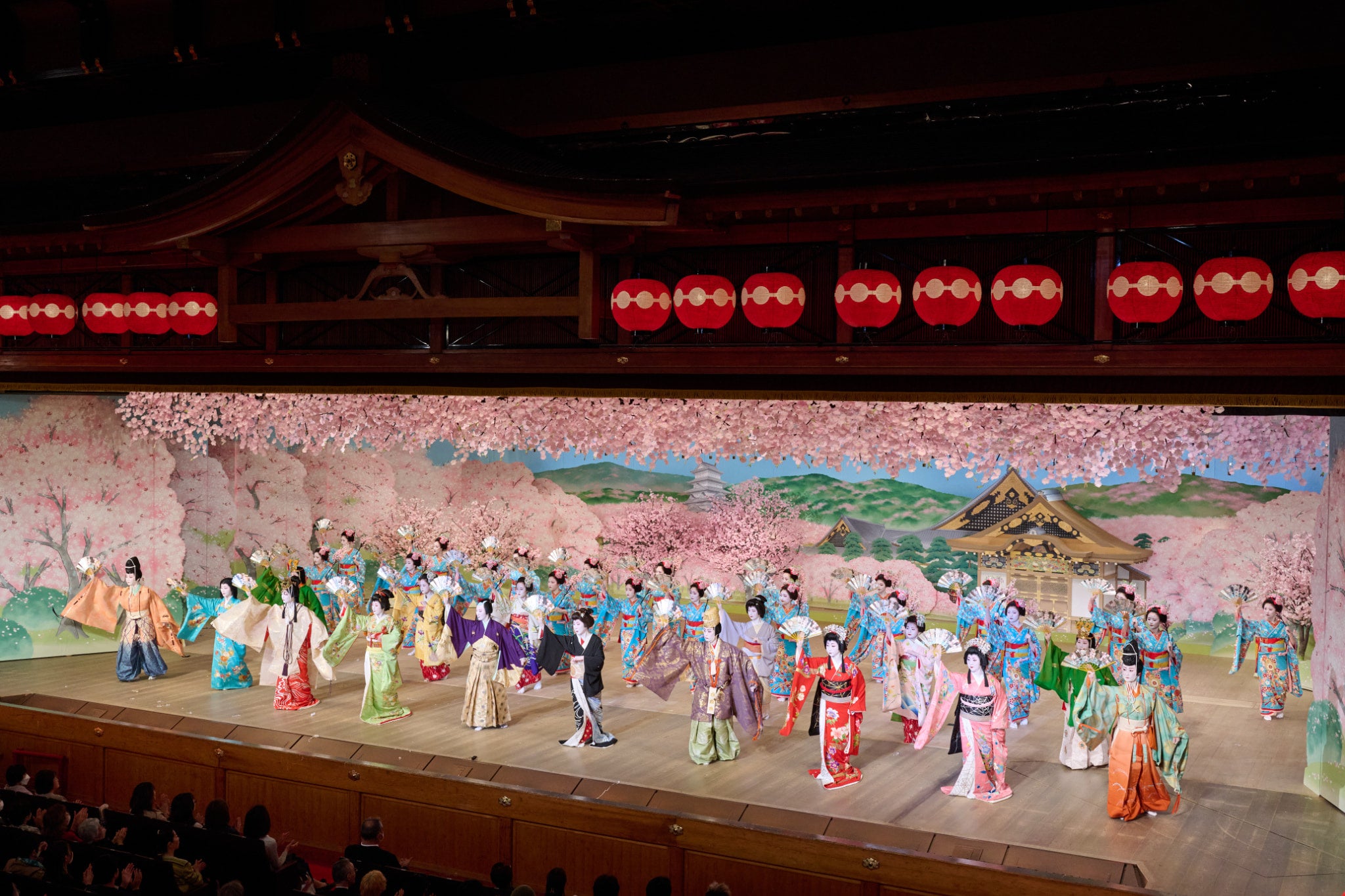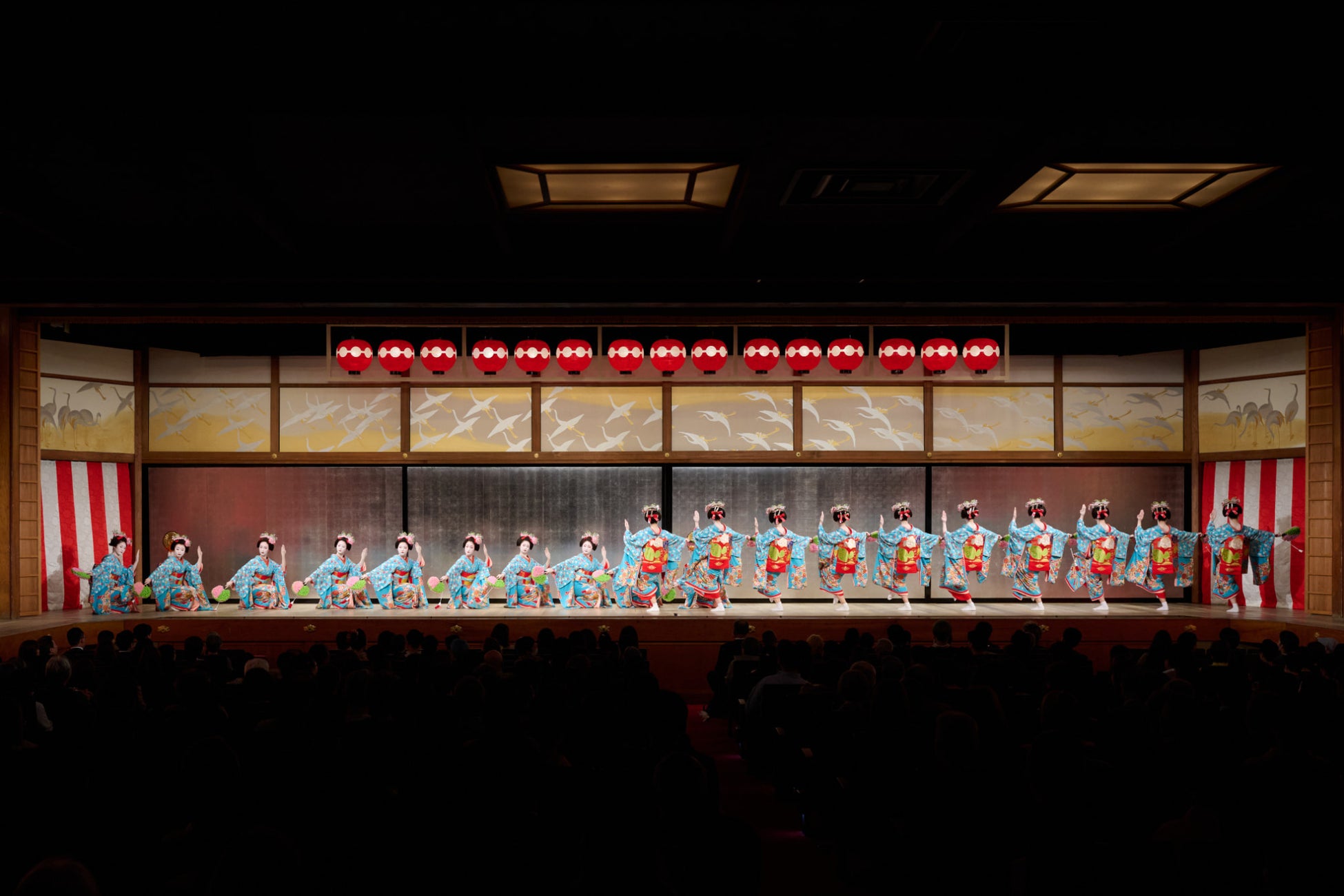 「都をどり」は京都最大の花街・祇園甲部の約80名(令和8年公演は1公演53名の出演)の芸妓舞妓たちが魅せる舞の公演です。明治5年に第1回京都博覧会の附博覧(つけはくらん)(アトラクション)として創始され、2024年に150回目の節目を迎えました。通常はお座敷でしか会うことが出来ない芸妓舞妓ですが、「都をどり」はお茶屋さん*とご縁がない方でも、どなたでも鑑賞することができます。